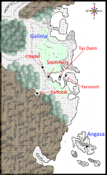 • Fermont - a small fortified town just across the water from Tas Dann. Its farms grow most of the cereal crops that Galinia needs. It is a part of the Nome Complex.