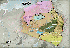 By the time of the Conquest, The Aldori had two main strongholds, The Rostland Plain and Skywatch - and their area of influence extended, between the mountains and forest, all the way between them (see the green area on the map). House Surtova claimed Issia (The pink area) and Orlovsky stood alone in their, not very productive, holding at Eagle's Watch (Blue). The southwest of modern Brevoy was a mishmash of Ioberian and Taldan settlers, untroubled by either the Aldori or the Surtova.