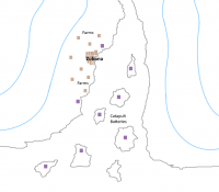A town, built by Sahkaran adventurers and settlers. Set on the bank of a wide river mouth, and protected by batteries of heavy catapults, it is the centre of Sakharan life in Drai Shon.