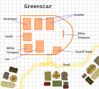 Greenscar is owned by the White Company - that doesn't mean to say they own everything for miles around, just that they own their offices, the mine, smelters and the rest of the land inside the palisade, the other businesses own their buildings and pay rent for the land. The White Company are allowed to tax the local population, in respect of public services and infrastructure, although they are limited in this, and can only charge taxes agreed by the Governor of The Eastern Province. The White Company are also responsible for claiming a state tax, at a rate set/agreed with the Governor.